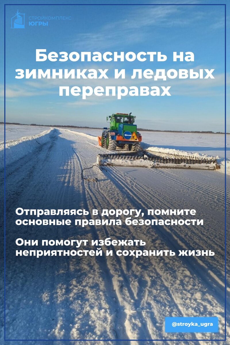 🛣️ Дорожники продолжают следить за состоянием ледовых переправ в Югре. При изменениях погодных условий – вводят новые требования безопасности, регулярно проверяют толщину льда. На части ледовых переправ круглосуточно работают контрольно-пропускные пункты и системы видеонаблюдения. Несмотря на принимаемые меры, водитель все равно должен оставаться бдителен. Совместно с Управлением автомобильных дорог Югры подготовили карточки с основными правилами безопасности на зимниках. ➡️ Для планирования безопасного маршрута также пользуйтесь полезными каналами и сервисами: ⭕️ Интерактивная карта зимников — построить маршрут ⭕️ Канал Управления автодорог — оперативные сводки #Новости #Зимники #Безопасность #СтройкомплексЮгры