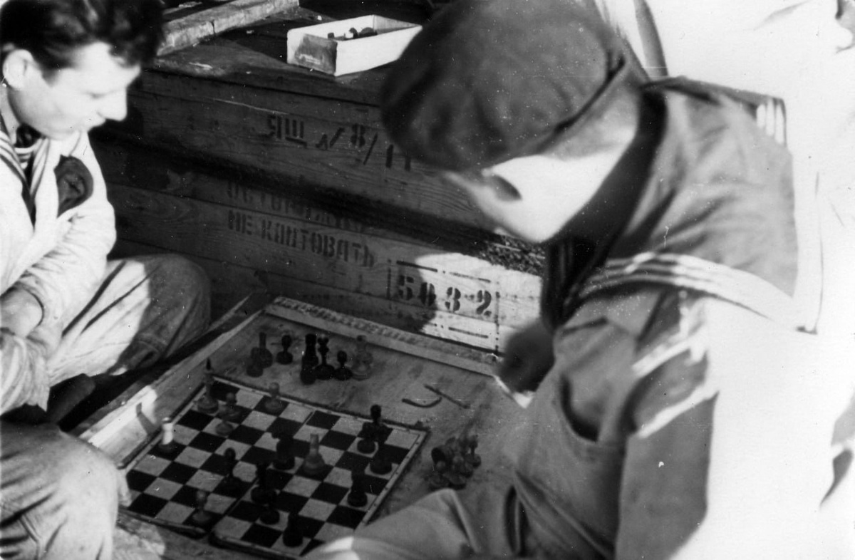 Матросы Советского флота в свободное время играют в шахматы. У матросов хлопчатобумажные береты темно-синего цвета. Интересно, но берет не по размеру и подвернут) Рисунок из приказа МО СССР №130 от 26 мая 1964 года. Источник: отсканированная фотография из личной коллекции. #фото #матросы #ВМФ #шахматы #берет
