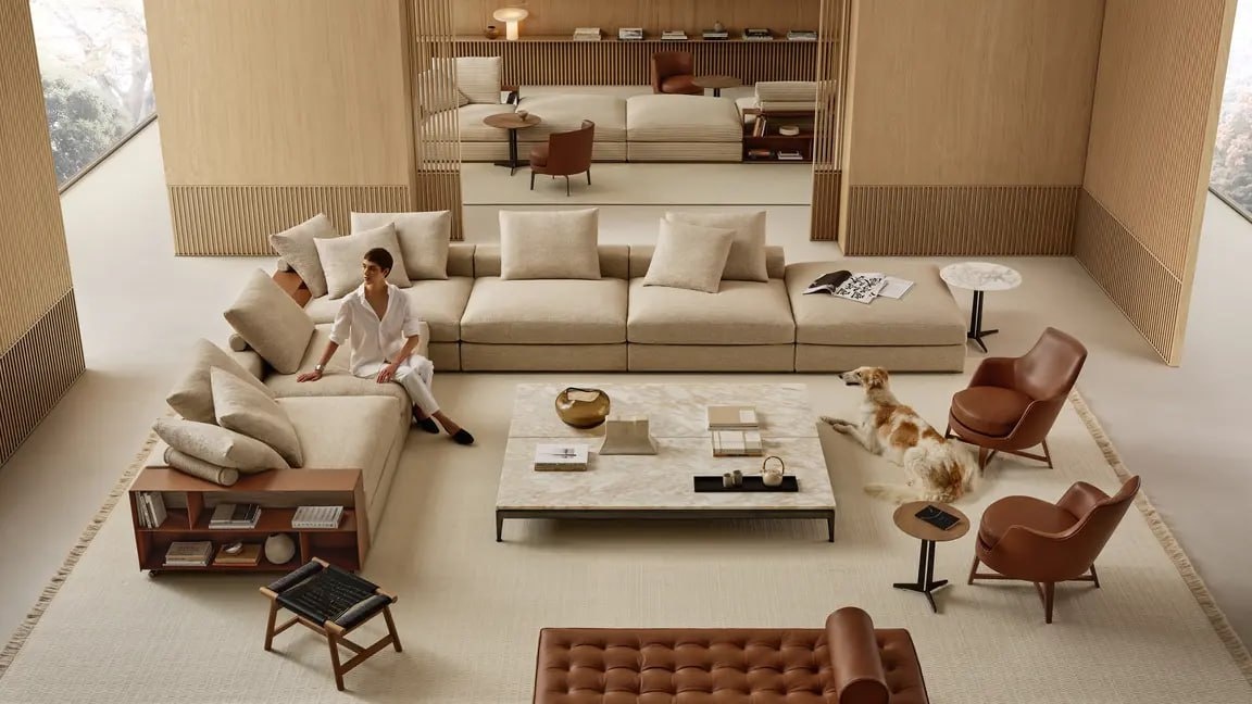 Диван Groundpiece, от именитой итальянской фабрики Flexform, подтверждает свою репутацию нестареющей иконы – модульной системы, позволяющей