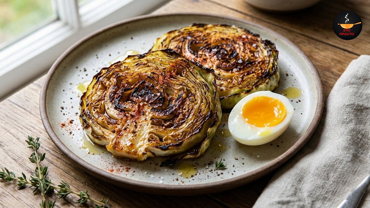 Вчера я поделилась советами, как тратить на еду на 30% меньше после всех праздников и рассказала, что готовлю капустные стейки. Многие попросили подробный рецепт – с удовольствием делюсь. капуста белокочанная – 1 небольшой плотный кочан; куриные яйца – 2 шт. Масло и специи (маринад): растительное масло (оливковое или подсолнечное) – 1 ст.л.; соль крупная – по вкусу (примерно 0.5 ч. л.); чёрный свежемолотый перец – по вкусу; паприка (лучше копчёная) – 1 ч. л.; сушёный чеснок – 0.5 ч. л.; сухие травы (тимьян, орегано или итальянская смесь) – щепотка. Включаем духовку разогреваться до 200°C (режим верх+низ, если есть конвекция – можно включить, будет более хрустящая корочка). Берём кочан капусты, снимаем верхние повреждённые листья. Кладём его на доску и острым большим ножом нарезаем поперёк на «шайбы» толщиной примерно 2-2.5 см. Старайтесь резать так, чтобы каждый стейк захватывал часть кочерыжки. Именно кочерыжка удерживает листья вместе, не давая стейку развалиться. В небольшой пиале с