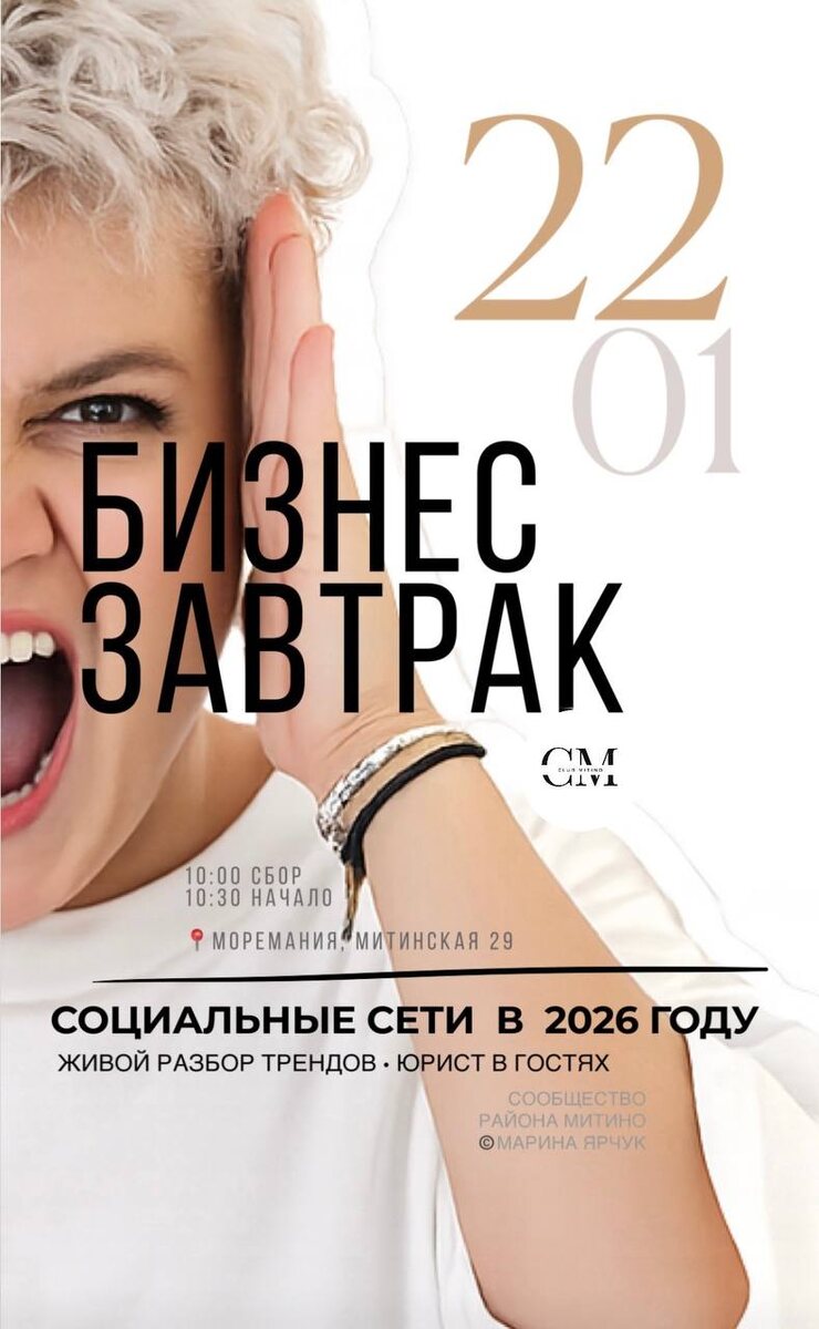 Первый в этом году, состоится 22 января, четвкрг ❤️❤️❤️❤️❤️сбор ❤️❤️❤️❤️❤️начало Кричащая тема: «Социальные сети в 2026 году» для предпринимателей. Соцсети меняются так быстро, что иногда хочется просто… закричать 😱 Алгоритмы, законы, ограничения, ответственность — хаос только усиливается. Мы решили разобраться спокойно и по делу. ☕️ На бизнес-завтраке: • что реально ждёт соцсети в 2026 году • какие тренды стоит учитывать бизнесу уже сейчас • где проходят юридические границы контента • как не попасть под штрафы и блокировки 👩⚖️ наш Юрист Алена Никитина — готовит ответы на самые горячие вопросы, вы можете также писать в комментариях. На встрече на всё ответим. 📅 22 января, четверг ⏰ 10:00 — сбор | 10:30 — начало 📍 Моремания, Митинская, 29 Это встреча для тех, кто: — ведёт бизнес — развивает личный бренд — работает с контентом и соцсетями — хочет ясности вместо паники Количество мест ограничено. 👉 Запись — в комментариях - Я БУДУ …. .. Далее у нас будут регулярные встречи п