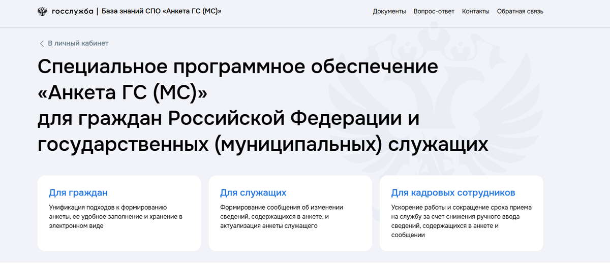 Госслужащие могут заполнить анкету при поступлении на службу с помощью сервиса "Анкета ГС (МС)"