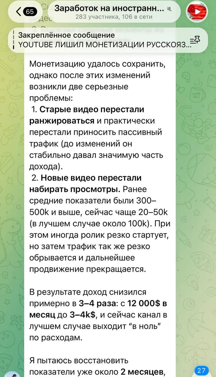 ⚠️ Важная проблема: у многих сейчас наблюдается падение просмотров и доходов на YouTube в больших, жирных, но конкурентных и достаточно