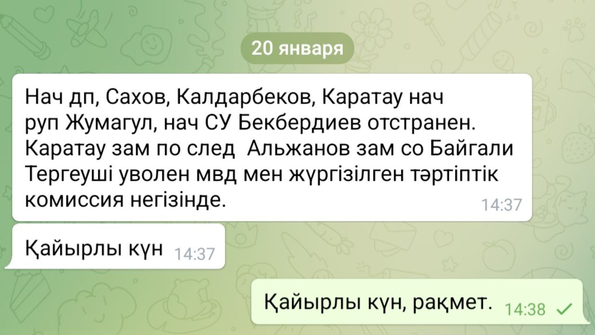 Несколько полицейских Шымкента могли уволить после выступления Токаева Выступая на Национальном курултае глава Казахстана Касым-Жомарт Токаев поручил проверить работу полиции Шымкента после убийства 21-летней студентки. По информации Telegram-канала Еgovpress, после слов президента не прошло и часа, как сразу несколько правоохранителей в Шымкенте лишились своих должностей. А некоторых – отстранили от работы. Редакция CMN.KZ обратилась в пресс-службу Департамента полиции Шымкента за официальным комментарием. Напомним, речь идёт об убийстве Нурай Серикбай, которая погибла от ножевых ранений. Главный подозреваемый – отвергнутый поклонник, который не смог смириться с отказом. Фото: t.me/egovpress t.me/CMN_KZ