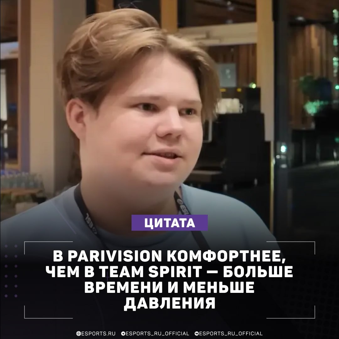 Я думаю, мне здесь явно будет комфортнее, чем в Spirit. В Spirit, очевидно, не было времени просто, чтобы интегрировать меня полностью в состав. Я прихожу в команду топ-3 мира, мне нужно сразу показывать какой-то уровень, которого у меня объективно не откуда было взяться, и результат закономерный. В PARIVISION это время есть, тут нет такого большого давления, как было в Spirit от комьюнити и аналитиков каких-нибудь. Думаю, мне будет намного лучше, чем было. 👍 Esports.ru | CS