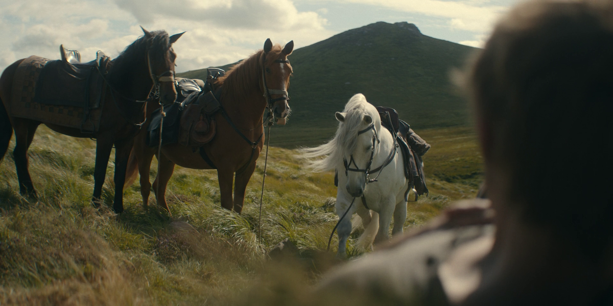 Итак, Дунк отправляется проверить коня и видит, как Эгг надел доспехи сира Орланда и играет на боевом коне. Вообще, всё завязывается очень быстро, без растягивания и разжёвывания. Приятная музыка и неспешные кадры путешествия создают действительно отличную атмосферу. Очень хорошее погружение.