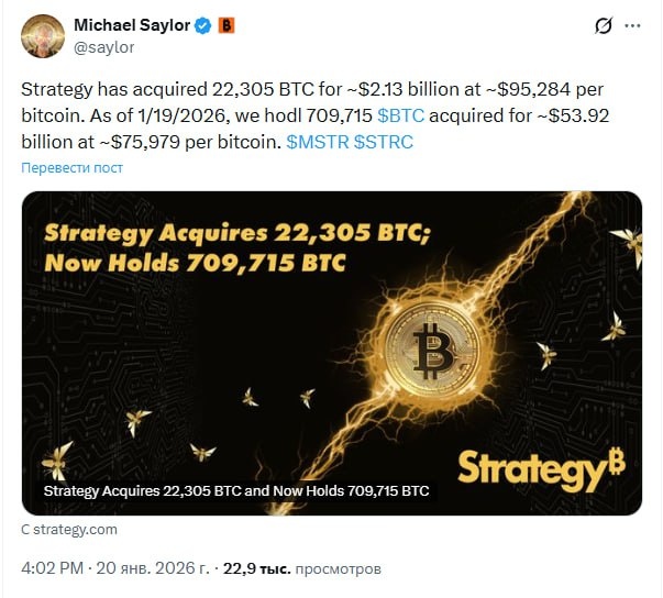 πΈStrategy ΠΏΡΠΈΠΎΠ±ΡΠ΅Π»Π° 22 305 BTC ΠΏΡΠΈΠΌΠ΅ΡΠ½ΠΎ Π·Π° $2,13 ΠΌΠ»ΡΠ΄ ΠΏΠΎ ΡΡΠ΅Π΄Π½Π΅ΠΉ ΡΠ΅Π½Π΅ $95 284 Π·Π° Π±ΠΈΡΠΊΠΎΠΈΠ½