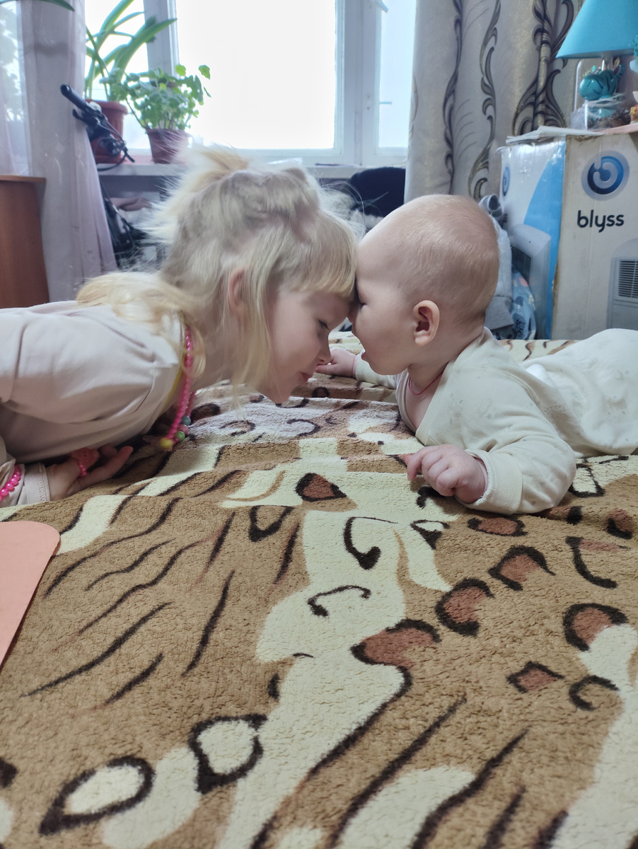 У меня двое замечательных дочерей - старшей 3,5 года, младшей всего 5 месяцев. Старшая ходит в детский сад, а младшая находится пока у меня под присмотром до своего садиковского возраста.