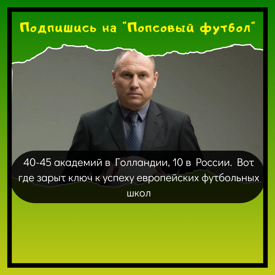 В России серьезно работают лишь академии Москвы, Санкт‑Петербурга и "Краснодара". На всю огромную страну - едва ли десяток сильных школ. Для сравнения: в крошечной Голландии - 40-45 академий с высоким средним уровнем подготовки.