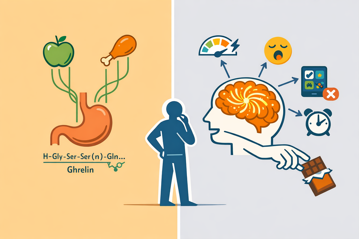 Вам знакомо это: вы только поели, но рука сама тянется за печенькой. Или резкий приступ «голода» посреди важной задачи. Вы думаете: «Организм требует энергии». А вот и нет. В 80% случаев ваш желудок молчит, а кричит мозг, требующий своей порции дофамина — гормона удовольствия и мотивации. Вы путаете физиологический голод с психологическим аппетитом, и эта ошибка приводит к перееданию, чувству вины и сбоям в энергетике. Пора разобраться в «системе управления питанием» вашего тела. Эта инструкция научит вас отличать настоящие сигналы SOS от ложных тревог и перенастроить пищевое поведение.