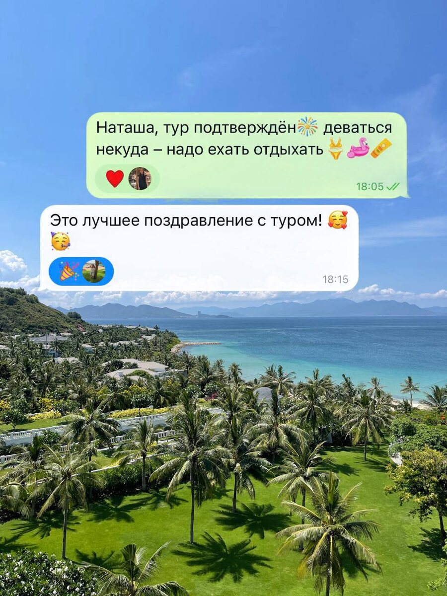 Пока вы не можете определиться с направлением и сколько денег хотите потратить, кто-то забронировал себе потрясающие каникулы во Вьетнаме - по выгодной цене🥥 📎Как только получили подтверждение (поймали удачу за хвост) тур прибавил в цене 40 000 руб.😕 🔖Может и вам стоит попробовать, потому что Вьетнам это: 🔵прямые рейсы, виза не нужна 🔵новинка - платить можно по QR из приложения банка 🔵теплое море, свежие морепродукты, спелые фрукты 🔵достопримечательности и парки аттракционов 🔵отели городского типа и зеленые оазисы 🔵варианты только для взрослых и для отдыха с детьми 🤩01 апреля, 12 ночей, из СПб 2 взрослых и ребенок, 🤩🤩🤩 🤩Dendro Gold Hotel 4*, 368 554 руб. 🤩Libra Nha Trang Hotel 4*, 379 093 руб. 🤩Muong Thanh Luxury Nha Trang 5*, 399 113 руб. 🤩Best Western Premier Marvella Nha Trang 5*, 404 626 руб. 🎙️А вы бы куда предпочли поехать на каникулы? Горящие путёвки на горящие даты – увы, не работают. У них тоже каникулы🙂 💌Я на связи, когда не сплю: ⚡️ Telegram #вьет