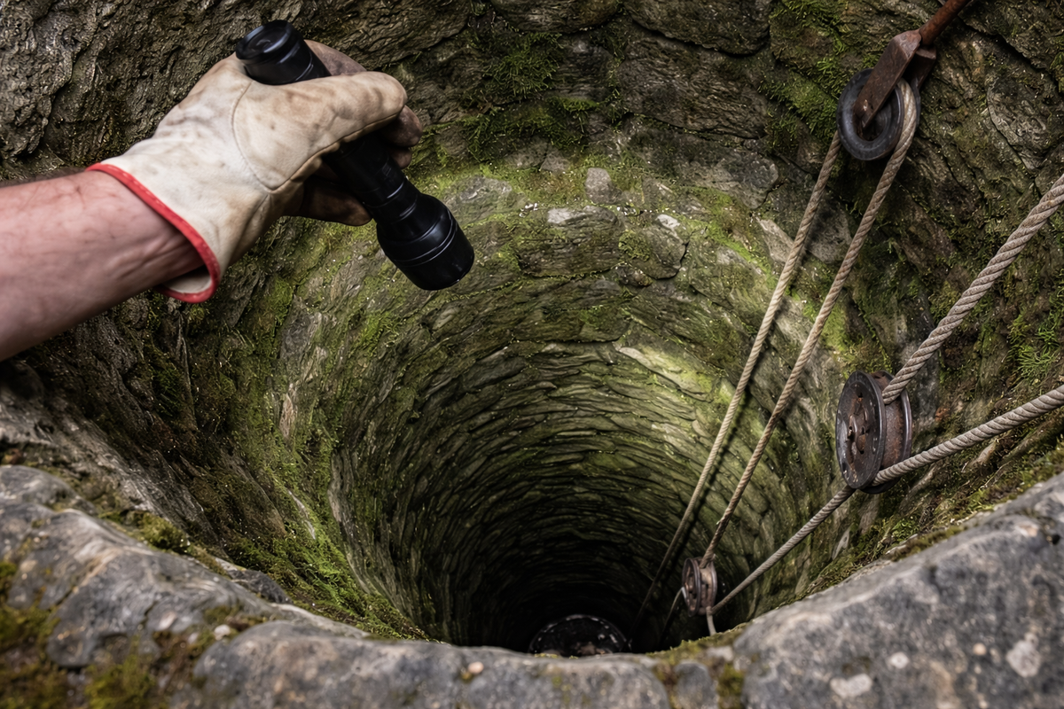 (Ссылка на первую часть: Читайте начало истории здесь...) Я переслушал запись раз десять. «Мне холодно... Открой...» — говорил мой голос из динамика. Это не мог быть монтаж. Это не могло быть совпадением. Первое желание было — схватить детей, жену, прыгнуть в машину и уехать обратно в душный город. Но как я объясню это Лене? «Дорогая, я слышал глюки в колодце»? Она и так считала, что я переутомился на работе. Весь день я ходил сам не свой. Колодец манил. Я ловил себя на том, что постоянно смотрю в его сторону. Днем он выглядел безобидно — старые бревна, паутина. Я решил: надо действовать. Если там кто-то сидит (бомж? сумасшедший имитатор?), я должен это выяснить, пока он не напугал детей. Я отправил семью в магазин в райцентр, а сам достал из сарая альпинистскую веревку (осталась с бурной молодости) и мощный прожектор. Привязал веревку к бамперу своего внедорожника, другой конец обвязал вокруг пояса. Взял монтировку — на всякий случай.