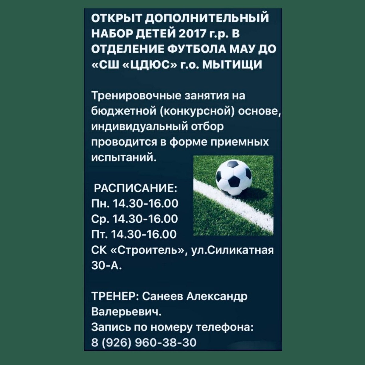 Мытищи. Открыт дополнительный набор в отделение по футболу ЦДЮС на бюджетные места.