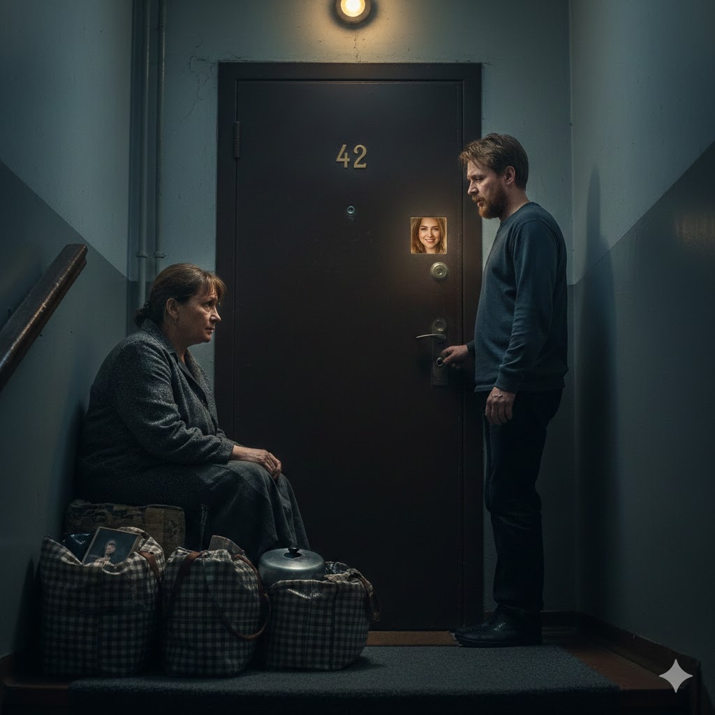 Лестничная клетка встретила меня могильным холодом и мигающей лампой, которая в такт моему бешеному пульсу отсчитывала секунды позора. Под ногами — три клетчатые сумки, те самые, «челночные», которые я хранила на антресолях десять лет. Теперь в них была упакована вся моя жизнь: пара сменного белья, старый альбом с фотографиями и кастрюля из нержавейки, которую я когда-то покупала «молодым» на новоселье.