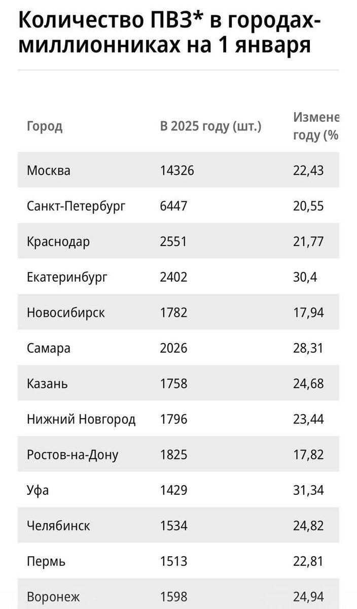 ⚡️Всего за год количество ПВЗ в России выросло почти на 45%, достигнув 226.400 точек
