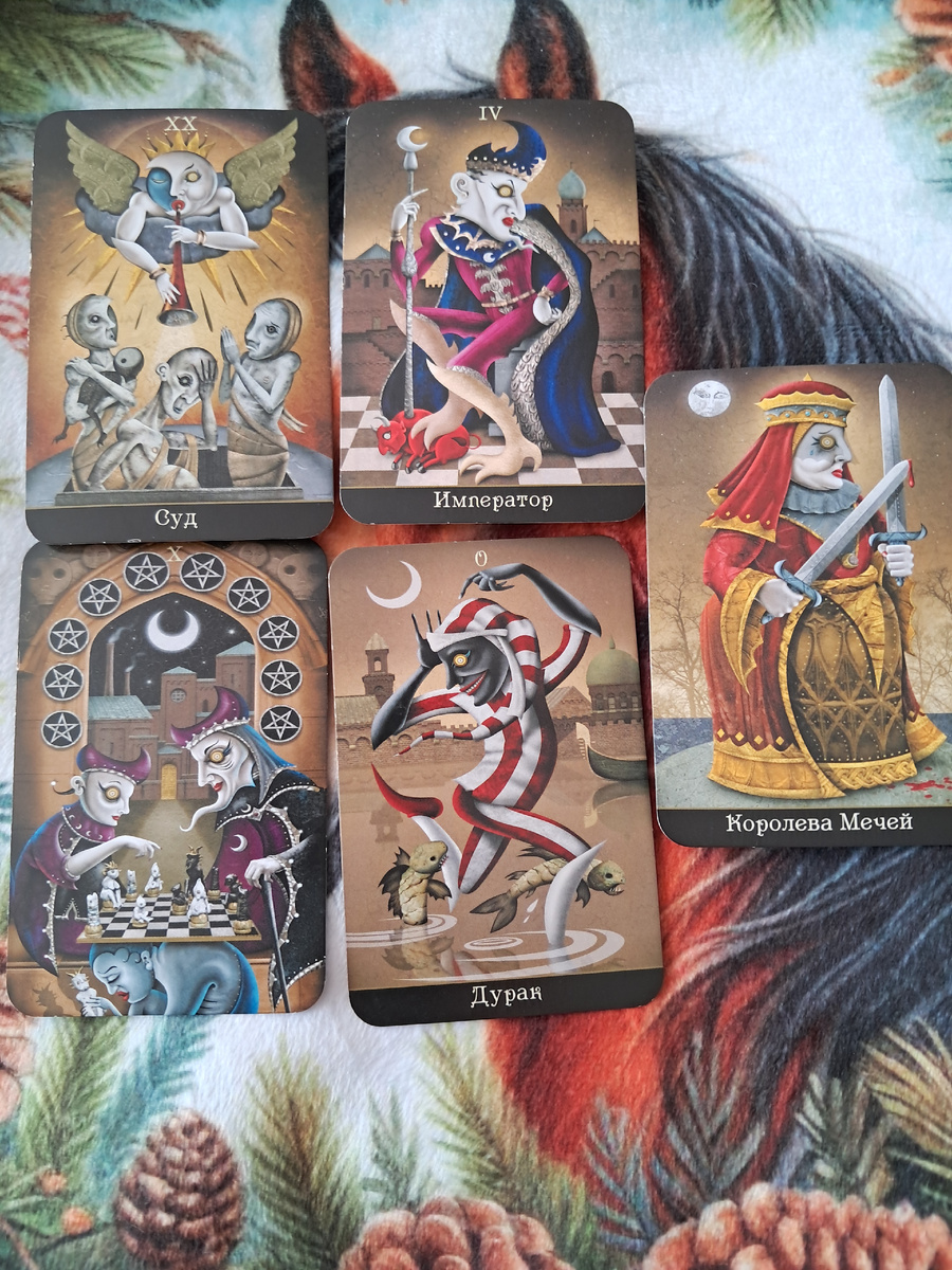 Расклад в целом благоприятен (Суд как призыв, Император как стабильность, 10 Пентаклей как успех), но содержит критически важные предостережения (Дурак о легкомыслии, Королева Мечей о необходимости анализа).