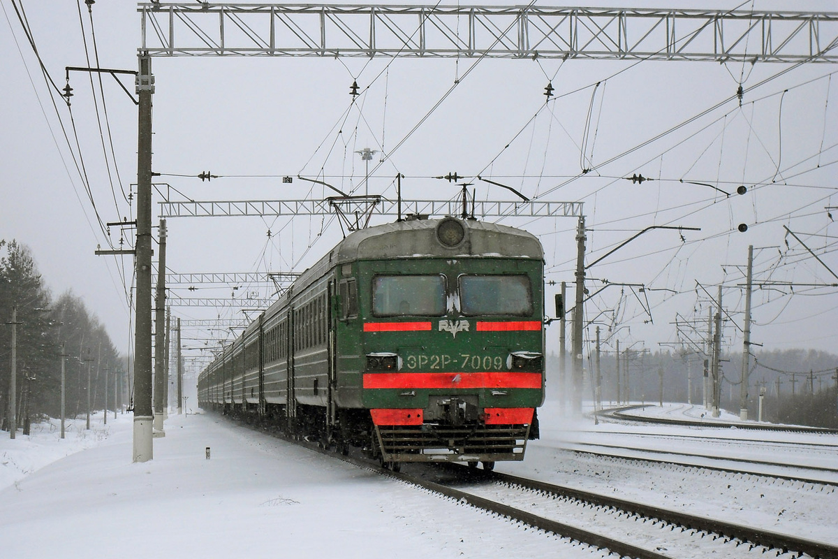 ЭР2Р-7009 на станции Фрязево, 14.02.2010. ЭР2Р-7009 у платформы Серп и Молот, 13.07.2010. ЭР2Р-7009 на перегоне Купавна - Железнодорожная, 11.08.2010. В 2010 году депо Железнодорожная начало получать с Демиховского машиностроительного завода новые ЭД4М, и все Эрки разбежались кто куда дорабатывать свой срок службы на других направлениях. Наша 7009 попала в депо образцового содержания Александр