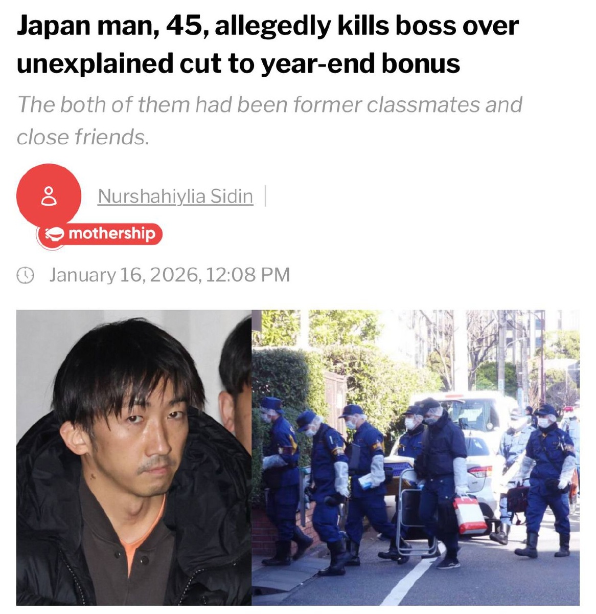 Привет, друзья! Сегодня мы поговорим о том, как экономические трудности могут довести человека до крайности. История, о которой пойдёт речь, произошла в Японии. Работник убил своего босса из-за маленькой премии. Представьте себе человека, который годами трудится на износ, надеясь на улучшение жизни. Но вместо признания и достойной оплаты он получает лишь разочарование и унижение. В такой ситуации даже самый спокойный и сдержанный человек может потерять самообладание. Эта история — напоминание о том, что проблемы с зарплатой и премиями могут иметь серьёзные последствия. Они могут разрушить жизни людей и их близких. Важно помнить, что за каждой цифрой в расчётном листе стоит человек с его мечтами и надеждами. А что вы думаете о подобных ситуациях? Как вы считаете, можно ли решить подобные конфликты мирным путём? Подписывайтесь на «The Collective», чтобы ничего не пропустить!