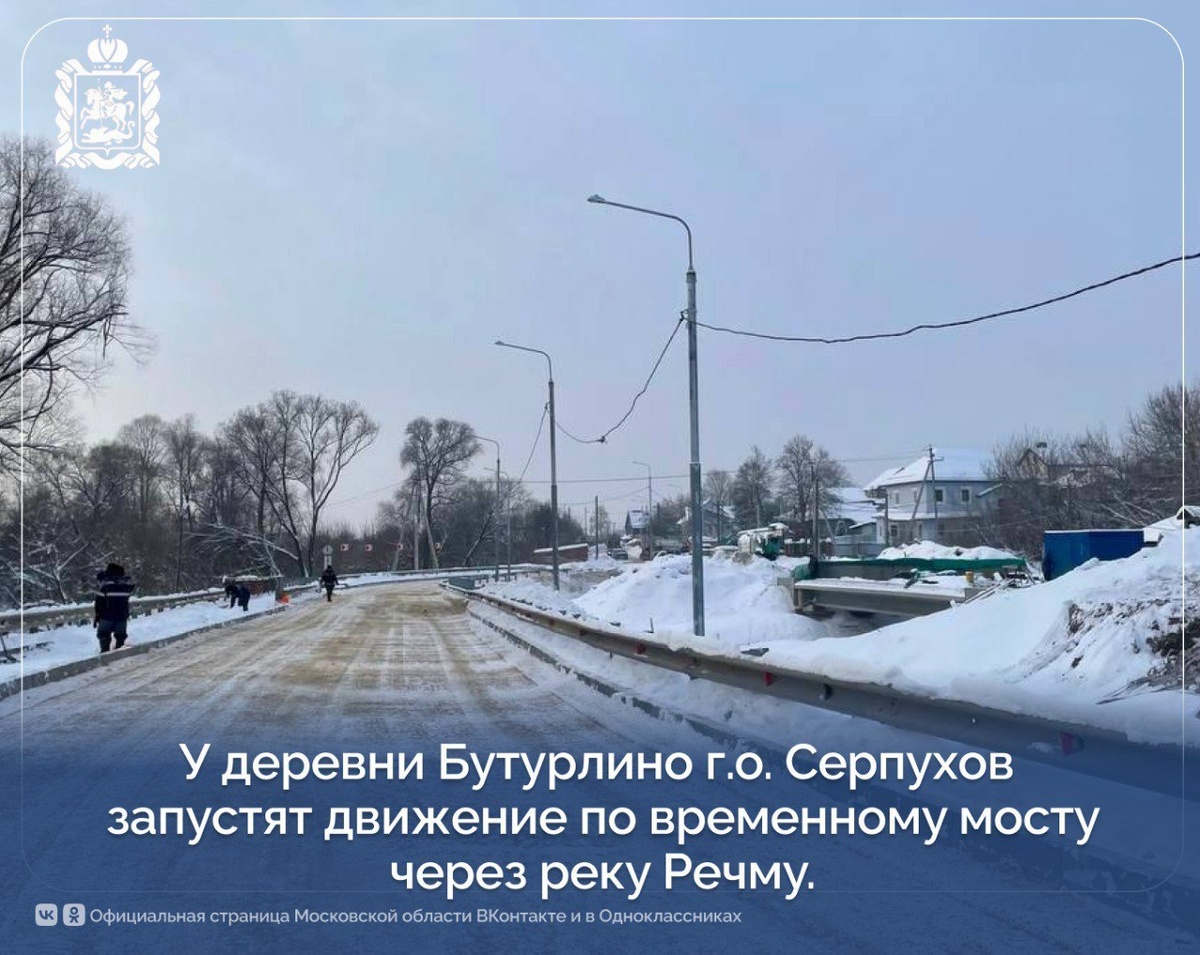о. Серпухов запустят движение по временному мосту через реку Речму. Мостовики обустроили временный мост и объездную дорогу для легкового транспорта и пешеходов. Для грузовиков массой больше 3,5 тонны предусмотрен объезд через Окское и Борисовское шоссе. При наступлении благоприятных погодных условий на объездной дороге устроят асфальт и перепустят на неё грузовой транспорт. Основное сооружение на Бутурлинском шоссе будет капитально отремонтировано по нацпроекту «Инфраструктура для жизни». Здесь уже обстроили буронабивные сваи, ригели, шкафные стенки и открылки, смонтировали железобетонные балки пролётного строения. 🏙Подмосковье - актуальные новости