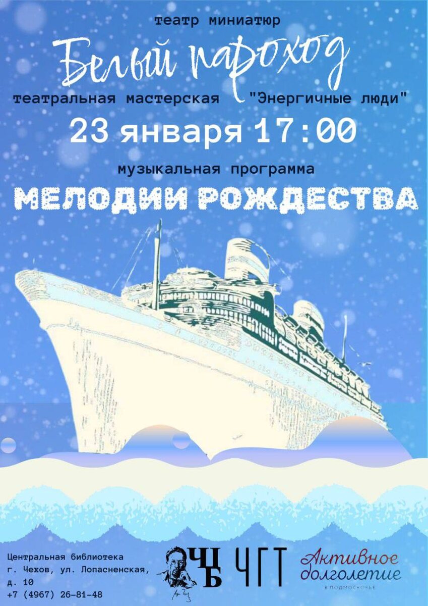 ✨ «Белый пароход»: первый концерт Нового года в Центральной библиотеке! 🎄✨ Вас приглашают окунуться в волшебную атмосферу праздников на программе «Мелодии Рождества»! Это отличная возможность встретиться вместе, насладиться любимыми праздничными мелодиями, услышать душевные стихи и узнать больше о святочных традициях. Что ждет гостей: - Исполнение полюбившихся рождественских композиций ♫️ - Интересные истории о праздничных обычаях 📚 - Теплое звучание знакомых песен 🎤 - Уютная атмосфера и заряд позитива 😊 Не пропустите шанс провести незабываемый вечер в кругу друзей и близких, наполненный магией и теплом! Центральная библиотека ждет вас! 🌟 👉 Прислать новость 💥 Проект "Чехов Детям"