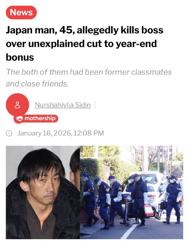 Масахиро Яманака был задержан, так как он стал последним, кто заходил в кабинет к начальнику перед преступлением. Признался в том, что нанес девять ударов ножом и объяснил свои действия. На рабочем месте обнаружили документ, подтверждающий снижение его премии с 1,5 оклада до одного. Дополнительные подробности можно узнать здесь. Постмейкер - автоматическое ведение канала 🤖 Анимация | СhatGPT-4 | Помощь с резюме
