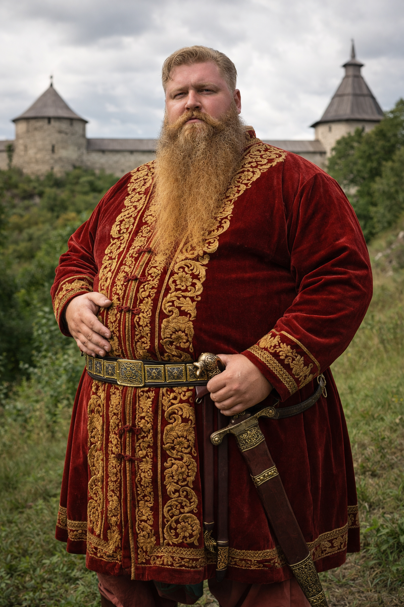 Идеал мужской красоты в Древней и средневековой Руси кардинально отличался от современных стандартов и был тесно связан с понятиями статуса, силы и здоровья. Основными чертами «красного молодца» были следующие характеристики: Главным отличием древнерусского идеала была дородность (полнота), которая считалась признаком благородства и высокого социального положения. Большой живот: Обладание «толстым брюхом» было предметом гордости, особенно среди знати,. Считалось, что чем больше живот, тем большего почета заслуживает человек,. Царь даже специально выставлял наиболее тучных купцов и дворян на приемах, чтобы придать мероприятию торжественность и значимость. Мощный торс: Идеальный мужчина должен был быть «плечистым» и «грудистым»,. В народе ценилась «косая сажень в плечах» (ширина плеч около 2,5 метров). Рост и сила: Мужчины описывались как высокие («подобно пальмам»), плотные, крепкие и «великорослые». Глаза и брови: Идеалом считались голубые или серые глаза с «острым» взглядом. Брови до