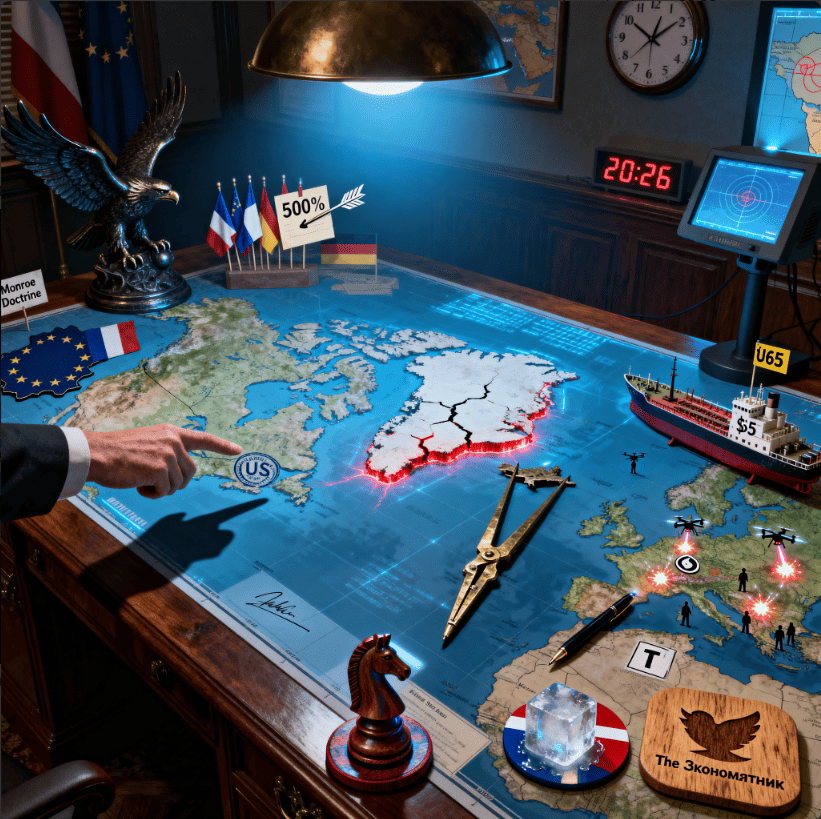 В минувшие выходные мировая политика получила новую точку кристаллизации. Президент Дональд Трамп объявил о введении пошлин против восьми европейских государств — Дании, Норвегии, Швеции, Франции, Германии, Великобритании, Нидерландов и Финляндии — в ответ на их «противодействие контролю США над Гренландией». Одновременно военнослужащие Бундесвера, прибывшие на остров в пятницу, получили из Берлина приказ срочно покинуть территорию. Пока внимание аналитиков сфокусировано на переговорах по Украине в Давосе, гренландский кризис незаметно становится водоразделом эпох — моментом, когда трансатлантическое единство из политического факта превращается в исторический артефакт.