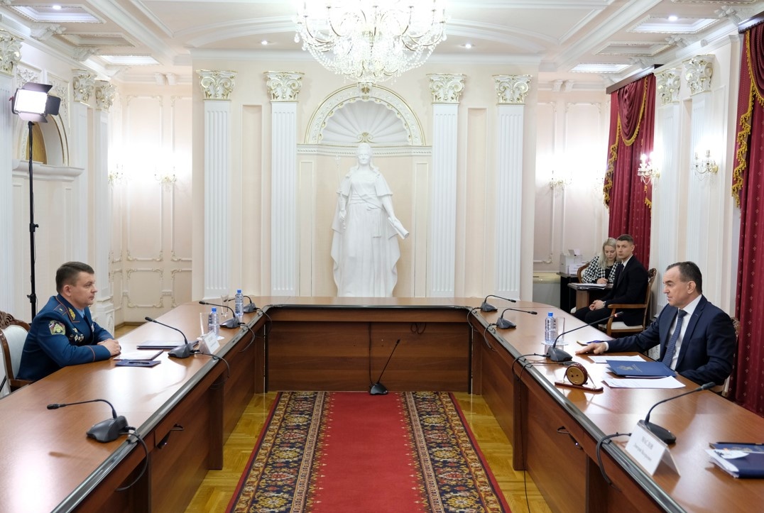 Новый начальник Главного управления МЧС России по Краснодарскому краю Алексей Клушин встретился с губернатором Краснодарского края Вениамином Кондратьевым. – Вы работаете в системе МЧС более 25 лет, ваш профессионализм и опыт особенно важны для Краснодарского края – третьего в стране по численности населения. У нас сложный рельеф, много опасных горных рек, обширные лесные территории. При этом в регионе проживают свыше 6 миллионов человек, ежегодно мы принимаем еще около 20 миллионов отдыхающих. Поэтому вопросы безопасности жителей и гостей, для нас имеют особое значение. Всегда в приоритете – человеческая жизнь. Важно работать на предупреждение чрезвычайных ситуации природного характера, таких как подтопления, оползни и лесные пожары. Делать все, чтобы обеспечить быстрое возвращение людей к нормальной жизни. На сегодняшний день мы создали серьезную систему мониторинга паводковой ситуации и оповещения жителей. Круглосуточно дежурят 22 аварийно-спасательных отряда «Кубань-СПАС» и 43 част