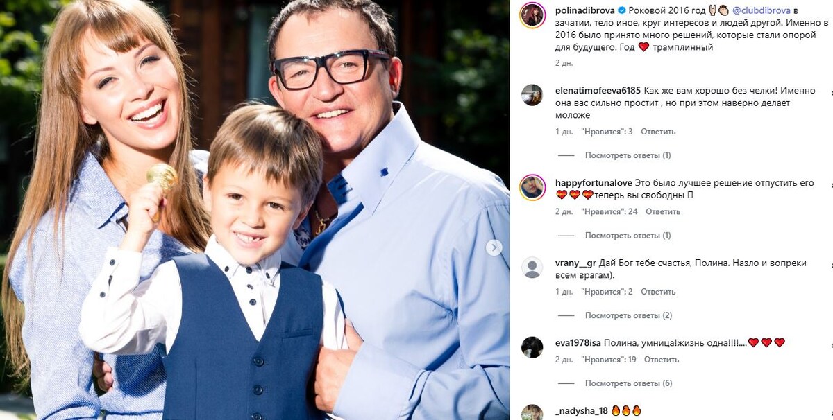 Теперь у Полины — новая глава. Роман Товстик. Снова мужчина с деньгами, статусом и снова — из чужой семьи. Но с ним она явно неспокойна. Весь её инстаграм кричит об одном: «Смотрите! Он меня любит! Я счастлива!». Фото, видео, сладкие подписи. Присмотришься к нему — а он на этих фото часто будто «пятится, как от неё». Неловко улыбается, глаза в сторону.