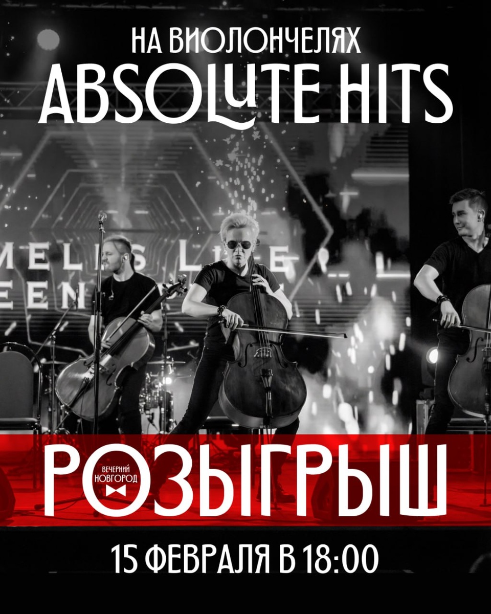 ! Совместно с нашими друзьями мы запускаем розыгрыш двух билетов на концерт музыкантов-виртуозов Renaissance Cellos. В программе «Абсолютные Мировые Хиты» собраны самые узнаваемые музыкальные композиции со всего мира, таких исполнителей, как ABBA, QUEEN, MICHAEL JACKSON, LADY GAGA, THE BEATLES, SCORPIONS, DEEP PURPLE, CELINE DION, ADELE, а так же BILLIE EILISH, MUSE, EURYTHMICS и многих других в неповторимом звучании виолончелей, ударных, клавишей. Неподражаемое мастерство, авторские аранжировки, оригинальное исполнение, яркие эмоции и только хиты на концерте Renaissance Cellos. Условия розыгрыша просты: 1️⃣ Подписаться на тг-канал «Вечерний Новгород» 2️⃣ Подписаться на тг-канал «МОИБИЛЕТЫ.РФ» 3️⃣ Написать в комментариях под этим постом номер вашего комментария по порядку начиная с 1 (обязательно проконтролируйте, чтобы ваш номер ни с кем не совпадал) 4️⃣ Дождаться результатов розыгрыша Итоги розыгрыша подведем 3 февраля в 11:00 с помощью рандомайзера. ⭐️ 15 февраля, 18:00 ⭐️ КЦ