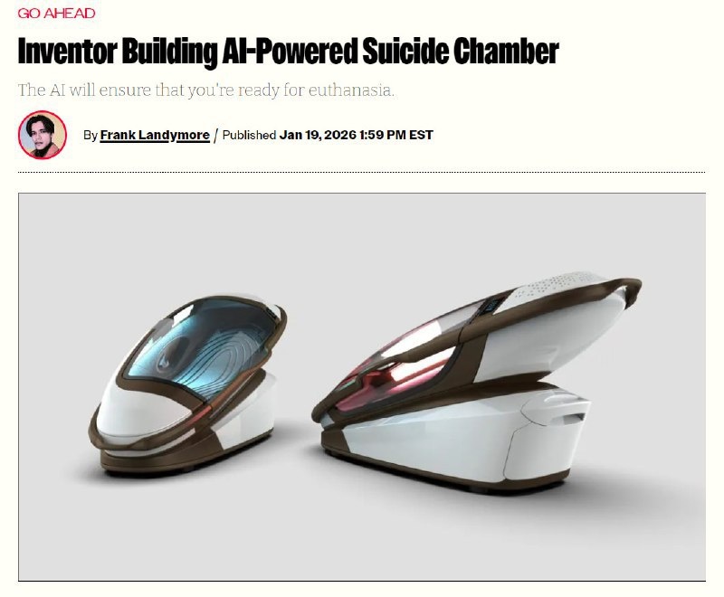 Стартап Sarco, разрабатывающий капсулы для эвтаназии, внедряет ИИ-тест «психической готовности». Перед активацией человек обязан пройти проверку — если алгоритм даст добро, доступ откроется. Чтобы понимать масштаб происходящего: внутри капсулы подаётся азот, человек быстро теряет сознание и умирает от гипоксии за считанные минуты. Критики в шоке — судьбоносное решение перекладывают на ИИ, который может ошибиться или неверно считать эмоции в момент сильного стресса. Читать такое по-настоящему страшно.... Подробнее: https://hard-tm.su/threads/141652/ 🕹HARD-TM — Подписаться