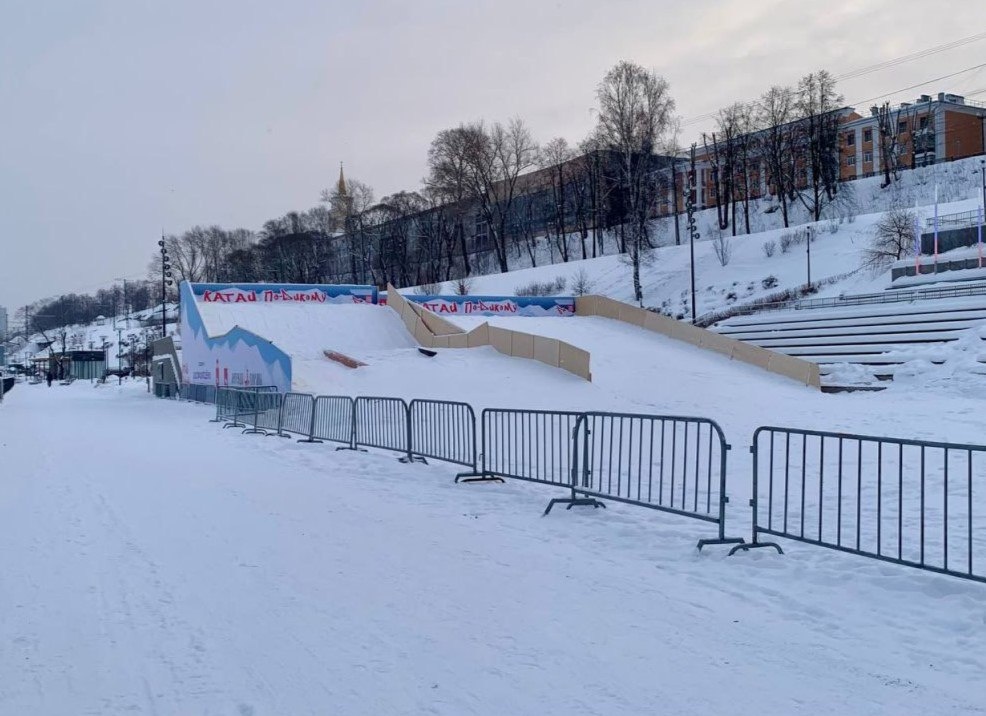 На набережной в Перми, возле амфитеатра, открылись склоны для катания на сноубордах и горных лыжах