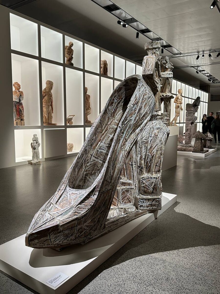 открытом музее Зиларт. Выставка оставила то самое неоднозначное впечатление, которое культурный человек называет «пищей для размышлений», а некультурный — «я не всё понял, но делаю вид, что так и было задумано». С одной стороны — тяжёлая артиллерия: Булатов, Кабаков, Васильев, Злотников, Файбисович, Белютин. И это не просто фамилии, а почти что символы веры для тех, кто произносит слово «современное искусство» с лёгким придыханием. Плюс петербургские и московские скульпторы нескольких поколений — диалог эпох, как на званом ужине у Третьяковки: седины спорят с дерзостью, бронза — с гипсом. Отдельное удовольствие — Алла Урбан: её работы смотрятся уверенно, как человек, который зашёл в комнату и сразу понятно — он тут не случайно. С другой стороны — принцип открытого хранения. Концепция, безусловно, модная: мол, искусство — не в футляре, а в жизни. Но, как говорил Оскар Уайльд, «контекст — это всё». И вот тут начинается лотерея. Когда скульптура органично встроена в пространство — она вы