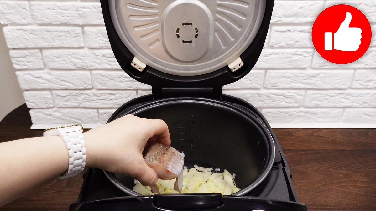 Рыба на луковой подушке в мультиварке на обед или ужин