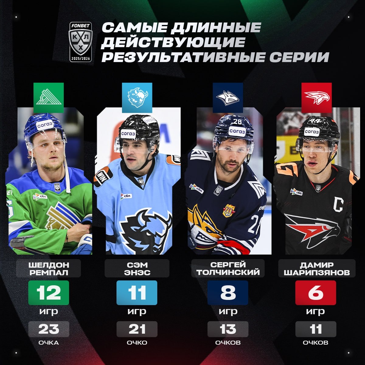 Сегодня на уфимском льду встретятся двое из четырех самых «горячих» игроков на данный момент: Шелдон Ремпал и Дамир Шарипзянов. Продлят ли они свои серии?