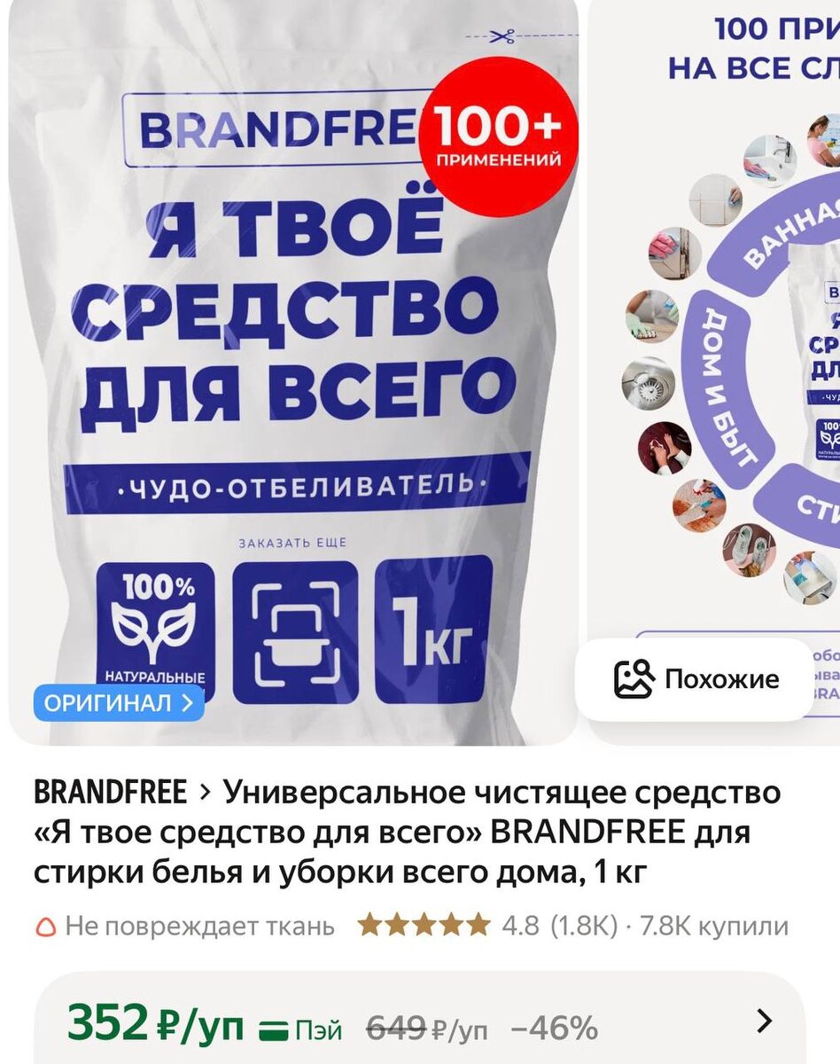 😔😲😄Универсальное чистящее средство «Я твое средство для всего» BRANDFREE для стирки белья и уборки всего дома, 1 кг