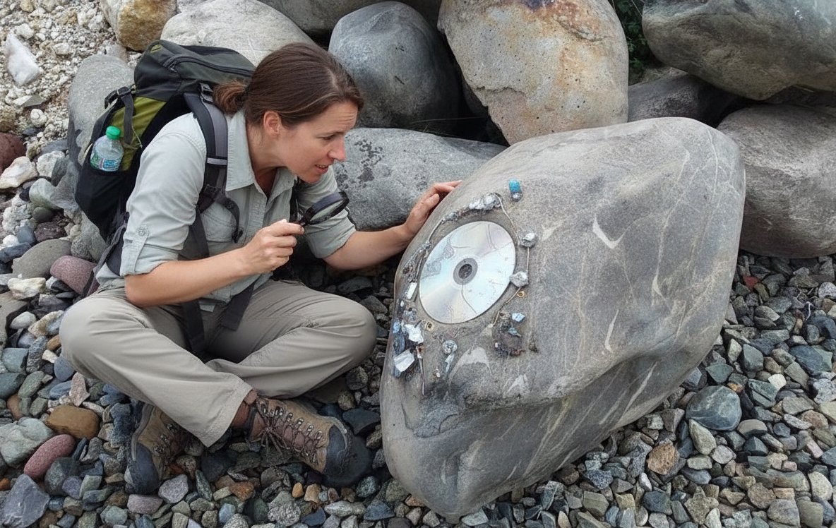Американская женщина-исследователь, доктор наук Мэри, сделала сенсационное открытие, которое перевернёт представление о хронологии развития Земли и цивилизаций. Обнаруженный артефакт настолько древний, что вызывает предположения о том, что возраст находки может превосходить возраст самой планеты. По предварительным оценкам, порода, где всё обнаружили, датируется примерно миллиардом лет, что ставит под вопрос существующие геохронологические модели и предполагает возможность существования высокоразвитых технологических форм жизни на Земле в далёком прошлом. Исследовательница обнаружила в одном из малоизученных горных массивов, точное местоположение которого пока держится в секрете, скопление валунов вдоль русла реки. Внешне эти камни не отличались от обычных геологических образований, но несколько экземпляров привлекли внимание Мэри своей аномальной морфологией и структурой. В одном из валунов был обнаружен вросший в породу диск, напоминающий по форме и размеру виниловую пластинку, а по