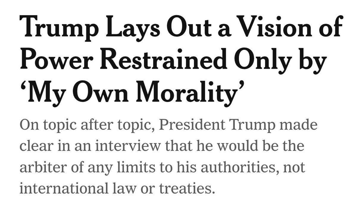 : Да, есть одно ограничение [власти Трампа]. Моя собственная мораль. Мой собственный разум. Это единственное, что может меня остановить. Мне не нужно международное право. Я не стремлюсь причинить людям вред Удобно! Но в целом таким поведением на международной арене Трамп заставит крупнейшие страны объединяться для противодействия такой политике. То, чего те же КНР, РФ, Индия не делали против Штатов, им придётся делать под давлением Трампа. Потенциально он загонит их и других в ситуативный союз. Очень недальновидно☝️ ЗеРада