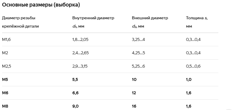 - Диаметр резьбы: подбирайте шайбу под диаметр болта/винта (например, для М8 — шайба DIN 126 М8).