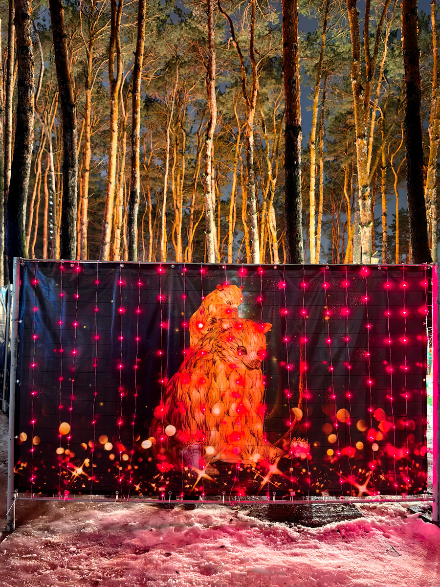 Мы заприметили это место еще в ноябре, когда просто гуляли по парку «Дельфин». Увидели ограждение, заглянули в щелку, а там — что-то яркое и манящее! 😍 Оказалось, это «Фестиваль волшебных огней». Девушка на входе рассказала, что выставка будет работать до 28 февраля, и мы решили: вернемся, когда выпадет снег. Ведь зимой огоньки смотрятся куда волшебнее! Снега мы дождались только под Новый год. И вот сегодня, несмотря на то, что погода подкачала (шел дождь ☔️), мы все-таки решили выбраться туда. «Фестиваль волшебных огней» — это международная выставка. В Воронеже такой проект впервые за 5 лет! Суть в том, что все фигуры здесь — это не просто пластик, а ручная работа по старинной китайской технологии: металлический каркас, обтянутый атласной тканью, и тысячи светодиодов внутри. Идея проекта, кстати, родилась из китайских фестивалей фонарей. Организаторы вдохновились и создали нашу версию — с героями сказок, которые знакомы нам с детства. До нас эти фигуры уже зимовали в Сибири (в Омске