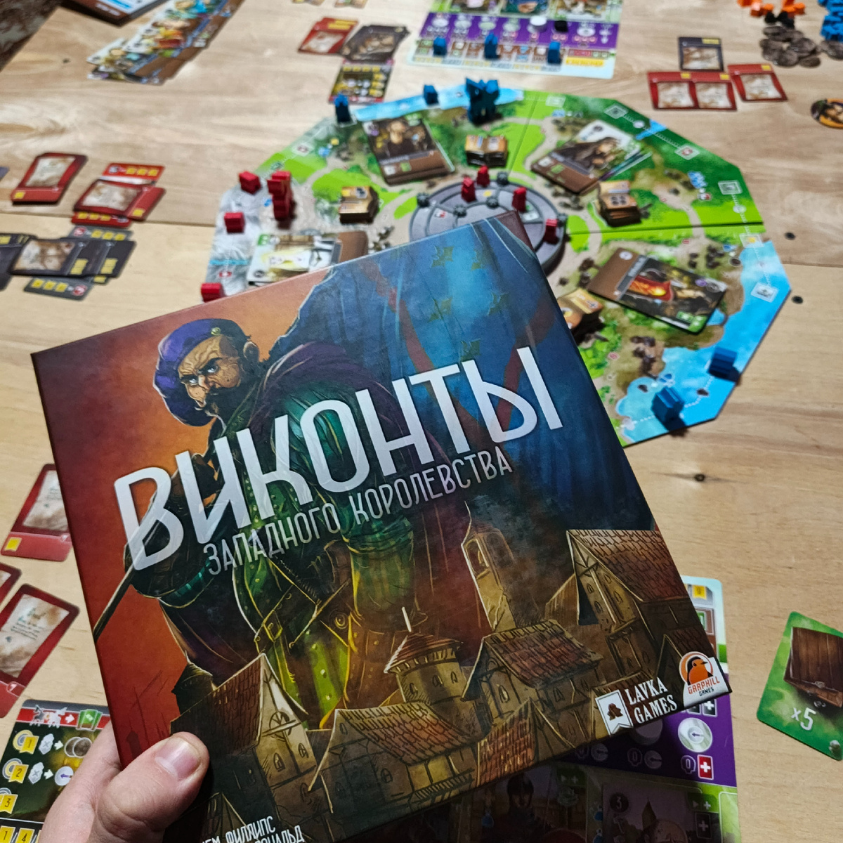 ⏺️ Мы виконты и должны принести наше королевство к процветанию или краху. Играем на победные очки, у кого больше, тот и побеждает, раскладываем поле, формируем колоды горожан, стопки манускриптов и личные планшеты, вы готовы играть.