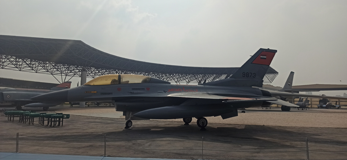 Экспозиция начинается на улице, где самолёты стоят под серым каирским небом