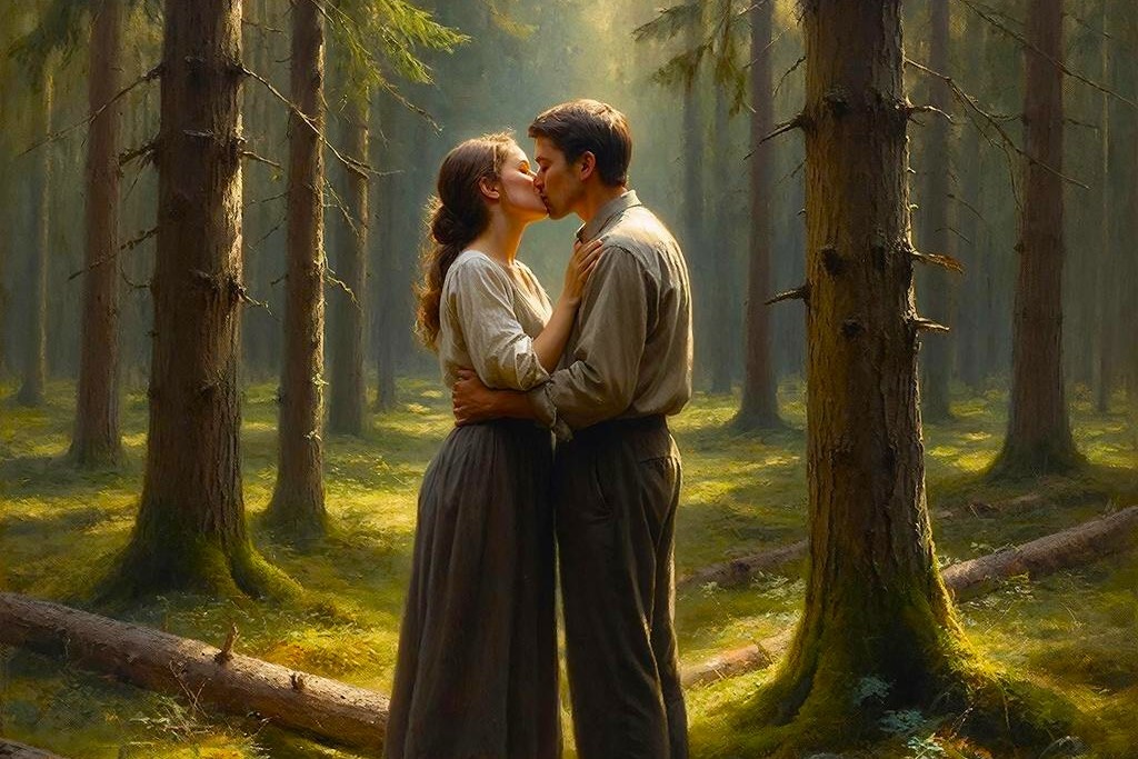 «Шепот ветра в листве» Любовный роман Вечер опускался на тихий лес, и шепот ветра в листве создавал особую атмосферу — словно сама природа приглашала к тайным встречам и нежным признаниям. Анна шагала по тропинке, чувствуя, как прохладный воздух ласкает кожу, а листья под ногами шуршат, словно шепчут ей свои секреты. Она остановилась у старого дуба, где их с Михаилом ждали долгожданные мгновения. Его взгляд был полон страсти и нежности одновременно. Он подошёл ближе, и их дыхания смешались с ароматом леса. Листья тихо колыхались, словно подыгрывая их прикосновениям. Михаил провёл пальцами по её волосам, а Анна ответила лёгким вздохом, позволяя себе раствориться в этом моменте. Ветер играл с её платьем, обнажая плечи, и каждый шёпот листвы казался обещанием новых открытий и чувственных наслаждений. В этом уединённом уголке природы, где шепот ветра сливался с их сердцебиением, они забыли обо всём, погрузившись в мир, где существовали только они двое и бесконечная страсть. Михаил осторож