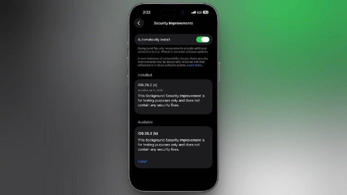 Apple выпустила второй тест Background Security Improvement в iOS 26.3, iPadOS 26.3 и macOS Tahoe 26.3. Эта система позволяет устанавливать безопасностные патчи в фоновом режиме между крупными обновлениями (например, для Safari/WebKit).