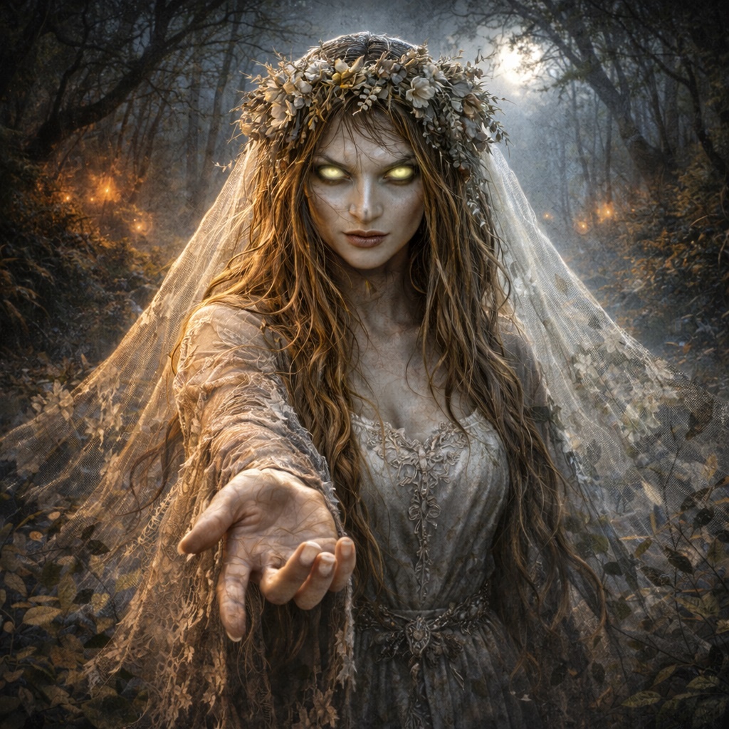 Лесная невеста — образ неслучившегося начала. Она не убивает сразу. Она уводит в состояние ожидания без конца.