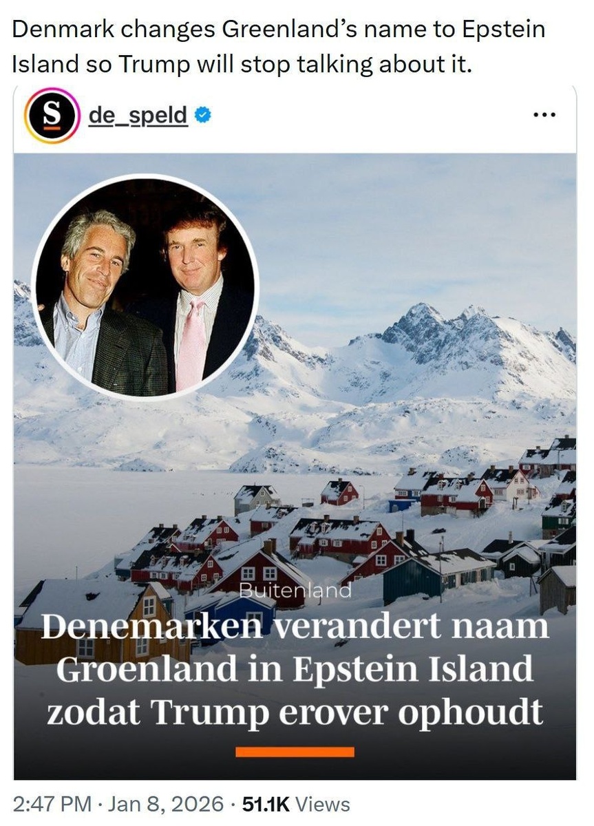 Дания переименовала Гренландию в «Остров Эпштейна», чтобы Трамп перестал о ней говорить.