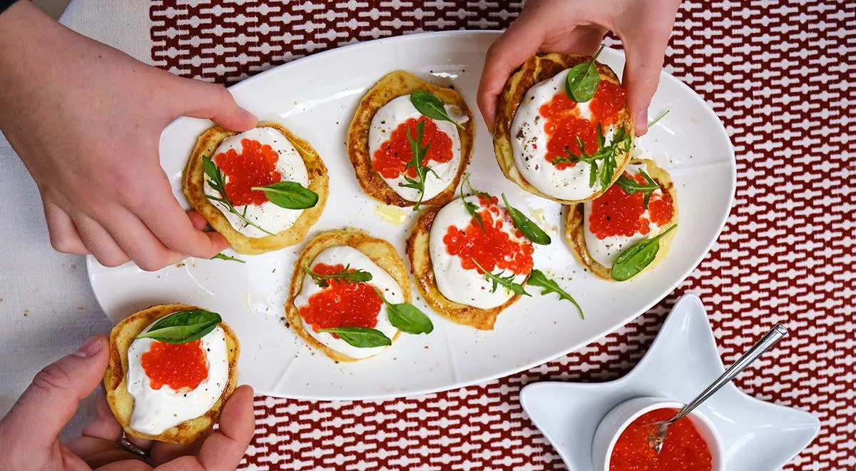 Оладьи из цветной капусты с икрой — изысканная закуска с нежным вкусом