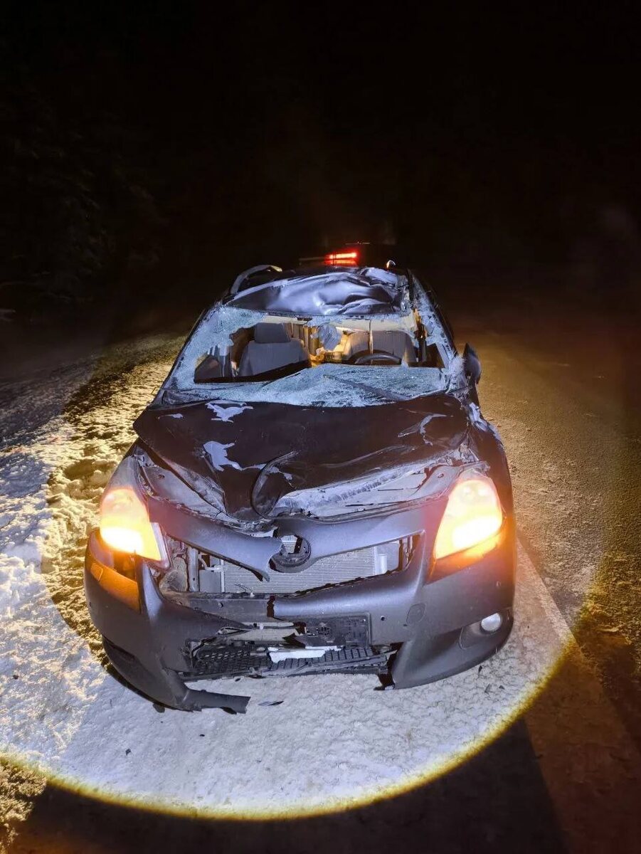 Как сообщили в областном УМВД, авария произошла сегодня около семи вечера на трассе "Вологда - Тихвин - автомобильная дорога Р21 "Кола". Мужчина 55 лет, находившийся за рулём "Тойота Версо", сбил лося, который вышел на проезжую часть. Водителя иномарки доставили в Чагодощенскую ЦРБ, пассажирку медики осмотрели и назначили амбулаторное лечение. Лось погиб на месте. Фото: УМВД России по Вологодской области. 📱 Telegram🐚📱 ВКонтакте🐚💙 Rutube