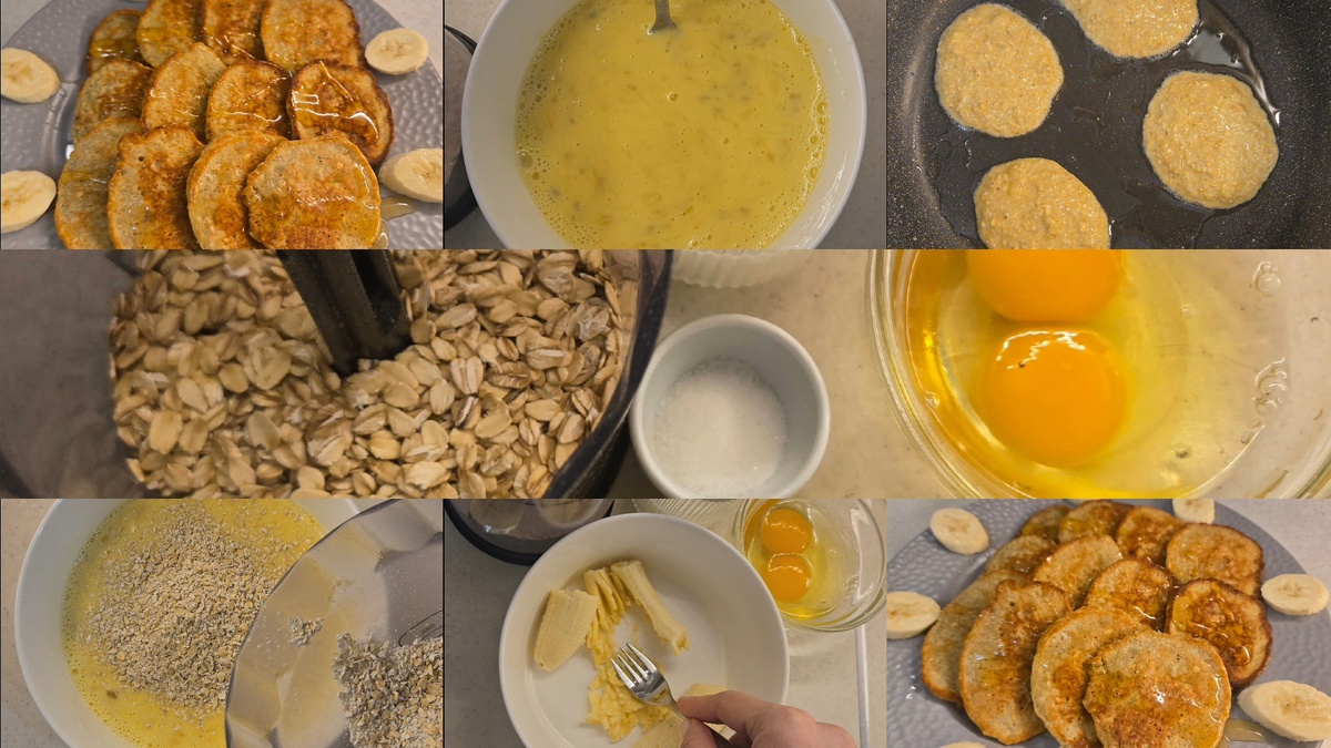 Овсяно-банановые оладьи на завтрак.