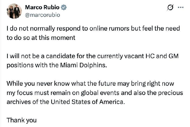Marco Rubio jokes about not taking on any more responsibilities — this time, with the Miami Dolphins